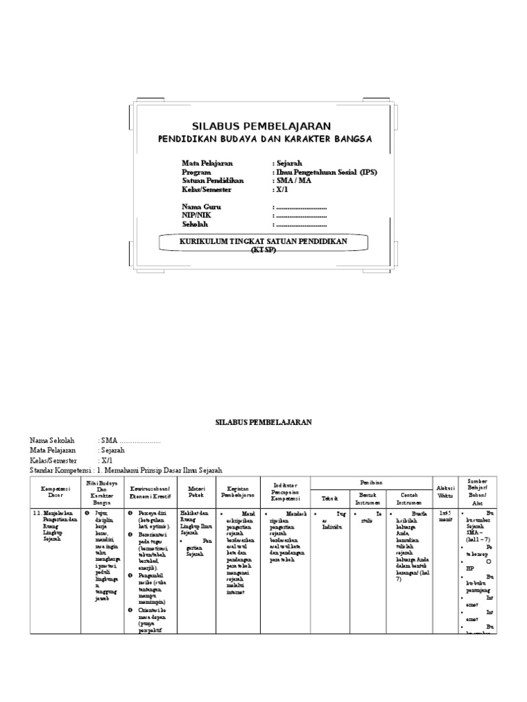 Sejarah indonesia, mulai dari kedatangan atau ditemukan manusia purba sampai sekarang. Silabus sejarah indonesia kelas 10 sma. Contoh silabus sejarah indonesia kelas xii (12) sma/ma/smk semester 1 dan 2 kurikulum 2013 revisi tahun 2020. Download silabus mapel sejarah indonesia kelas x (10) sma/ma kurikulum 2013 revisi tahun 2021. Berikut bospedia memberikan soal essay sejarah kelas 10 sma/ma. Hasil analisis kemudian di laporkan dalam bentuk tulisan dengan format doc lalu diupload pada tugas minggu. Pengantar kurikulum matematikah peminatan silabus matematika sma kelas xi silabus matematika sma kelas xii. Dengan materi uas sejarah indonesia kelas. Silabus sejarah indonesia kelas x k13 revisi 2020 , yang digunakan saat ini ada yang sudah menerapakan kurikulum 2013. Pada artikel ini kami menyediakan dan membagikan perangkat pembelajaran kelas 10, 11, dan 12 yang sudah terintegrasi dengan kurikulum 2013 revisi terbaru 2019. Puji syukur alhamdullilah kita panjatkan kehadirat tuhan yang maha esa karena atas berkat dan rahmatnya sehingga buku pelajaran sejarah kelas x kurikulum 2013 dapat terselesaikan. Rpp sejarah indonesia kelas 10 sma. .10 download program semester kelas 10 download silabus kelas 10 download rpp sem 1 kelas 10 download rpp sem 2 kelas… bapak/ibu guru yang membutuhkan rpp beserta silabus mata pelajaran kelas x dan kelas xi sma kurikulum 2013, silahkan diunduh link.